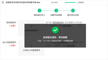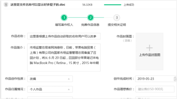 上传作品——>选择作品分类——>仔细阅读上传协议——>作品上传成功/失败(重新上传)——>进行实名认证,填写作品信息,提交审核——>审核通过发证/审核不通过,说明原因——>审核通过可以下载电子证书或是纸质证书,电子证书直接下载,纸质证书暂时需要联系客服:400-072-0808